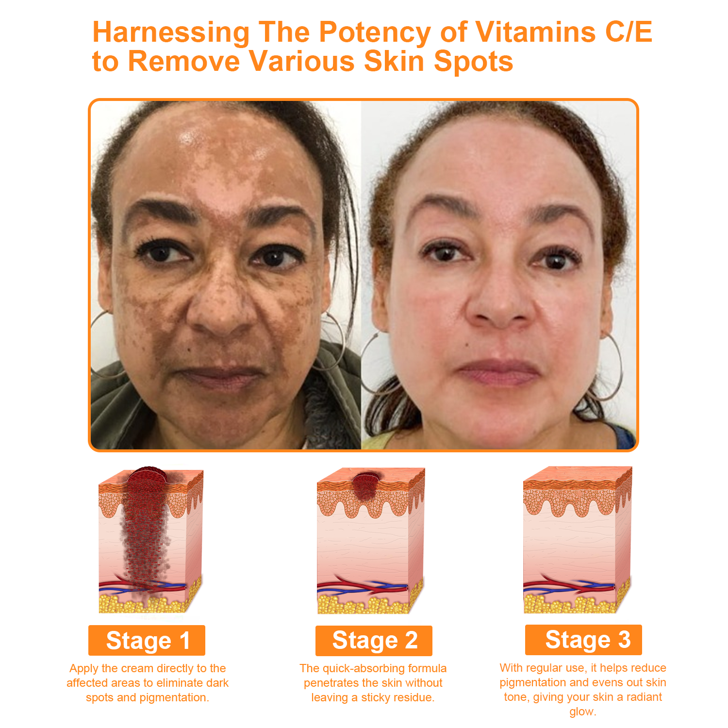 Infused with Vitamins C and E, our formula is your secret to achieving the radiant, glowing skin you've always desired. BBOJI™ 7-Day Quick Skin Repair Cream features powerful ingredients that penetrate deeply to reduce dark spots, pregnancy marks, sun spots, hyperpigmentation, scars, discoloration, melasma, and uneven skin tones, giving you a more even complexion. Our cream effectively targets both dark, defined spots and smaller, scattered imperfections across the face. Its quick-absorbing texture is non-sticky, leaving your skin looking translucent and revitalized.